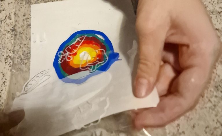 Nimm ein Blatt Papier und wähle Farben, die deiner Stimmung entsprechen. Trage die Farbe in Form von Klecksen oder Strichen auf das Papier auf und lege es in eine Plastiktüte, um die Umgebung zu schützen. Dann lass deinen Gefühlen freien Lauf, indem du mit der Faust oder der flachen Hand kräftig auf das Papier schlägst. Spüre, wie die Anspannung nachlässt und die Farben sich in aufregenden Mustern verbinden. Anschließend schneidest du die Plastiktüte vorsichtig auf. Der überraschende Effekt durch die vermischten Farben verleiht dem Bild eine besondere Note.