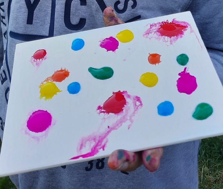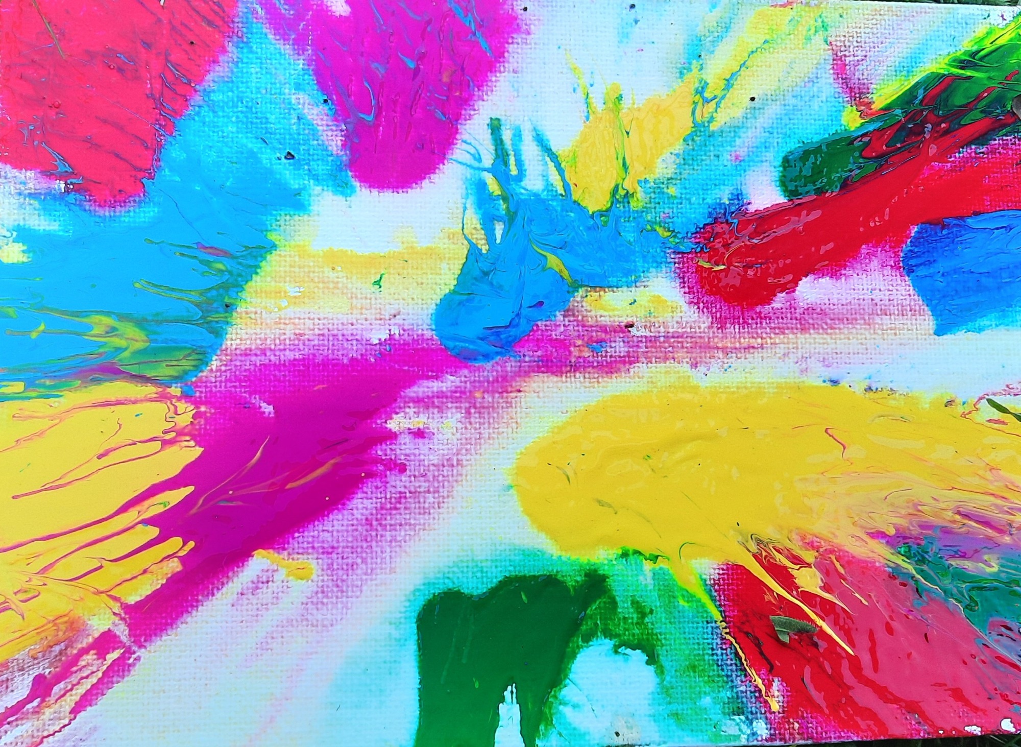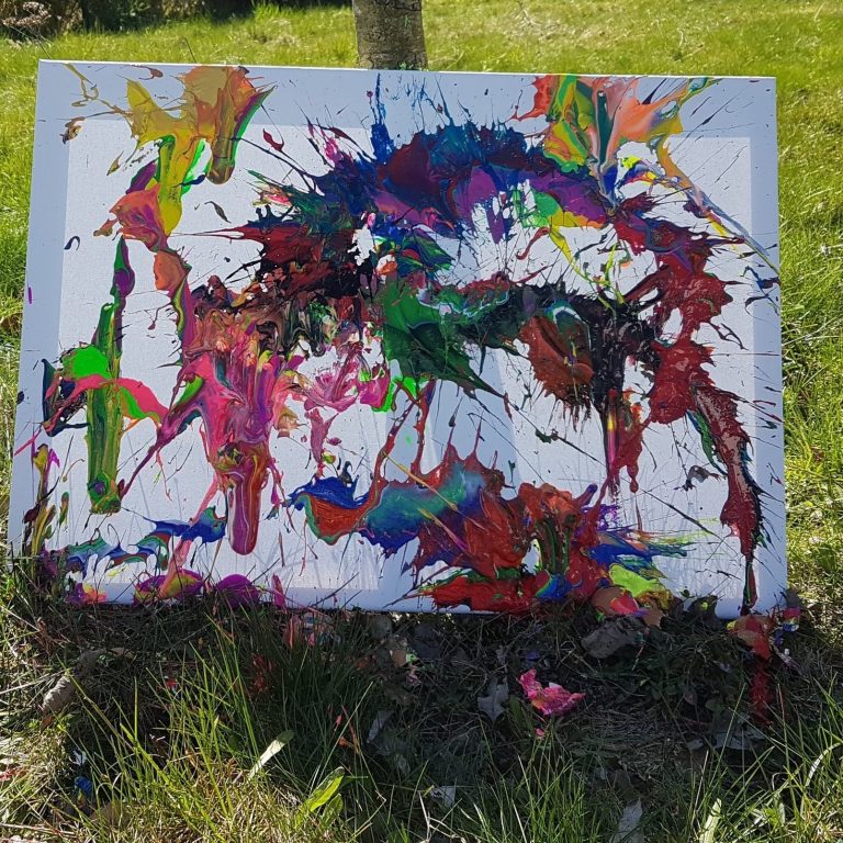 Sammle die geworfenen Leinwände wieder auf und bewundere die entstandenen Kunstwerke. Jede Leinwand wird ein Unikat mit bunten und interessanten Mustern sein.