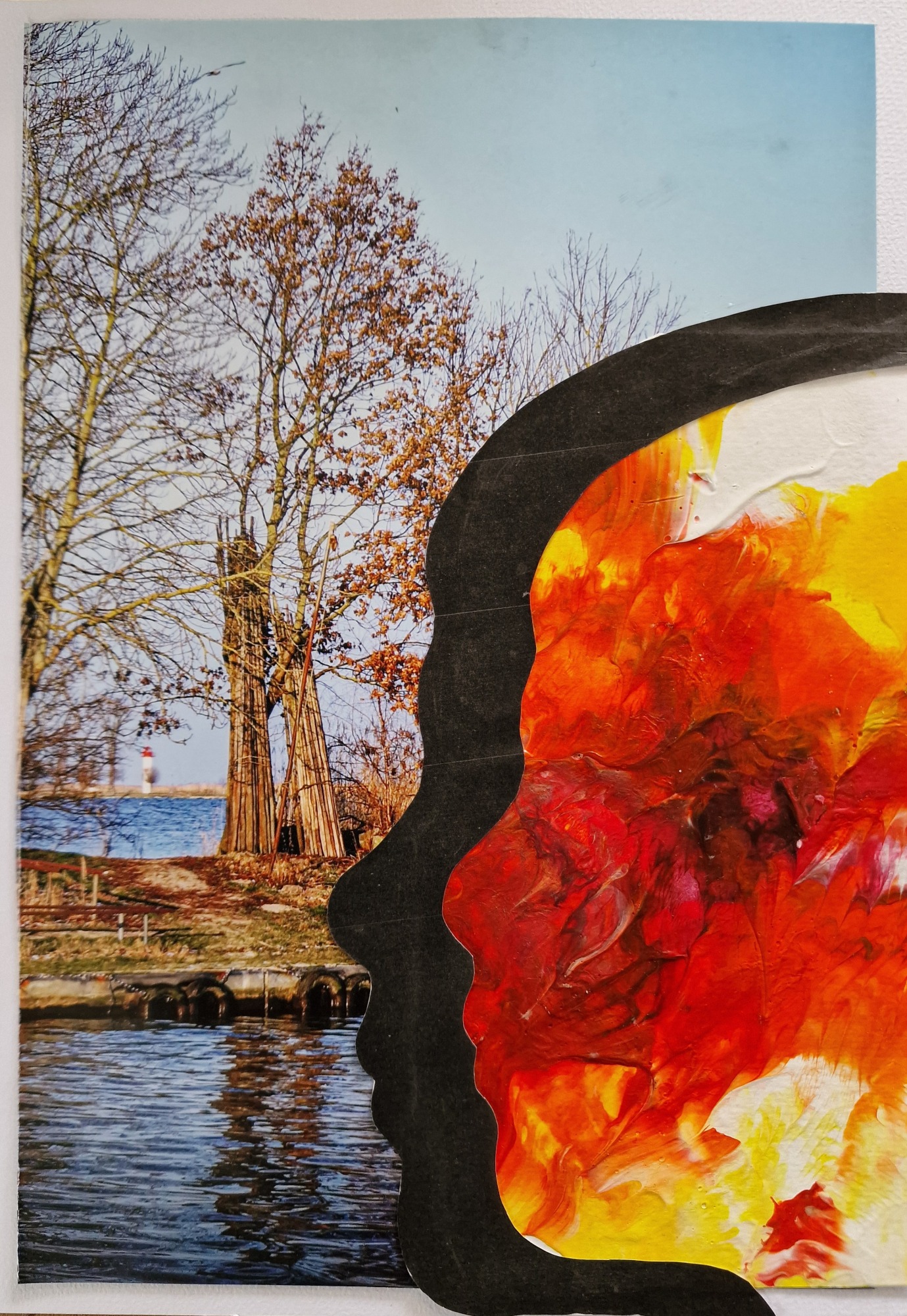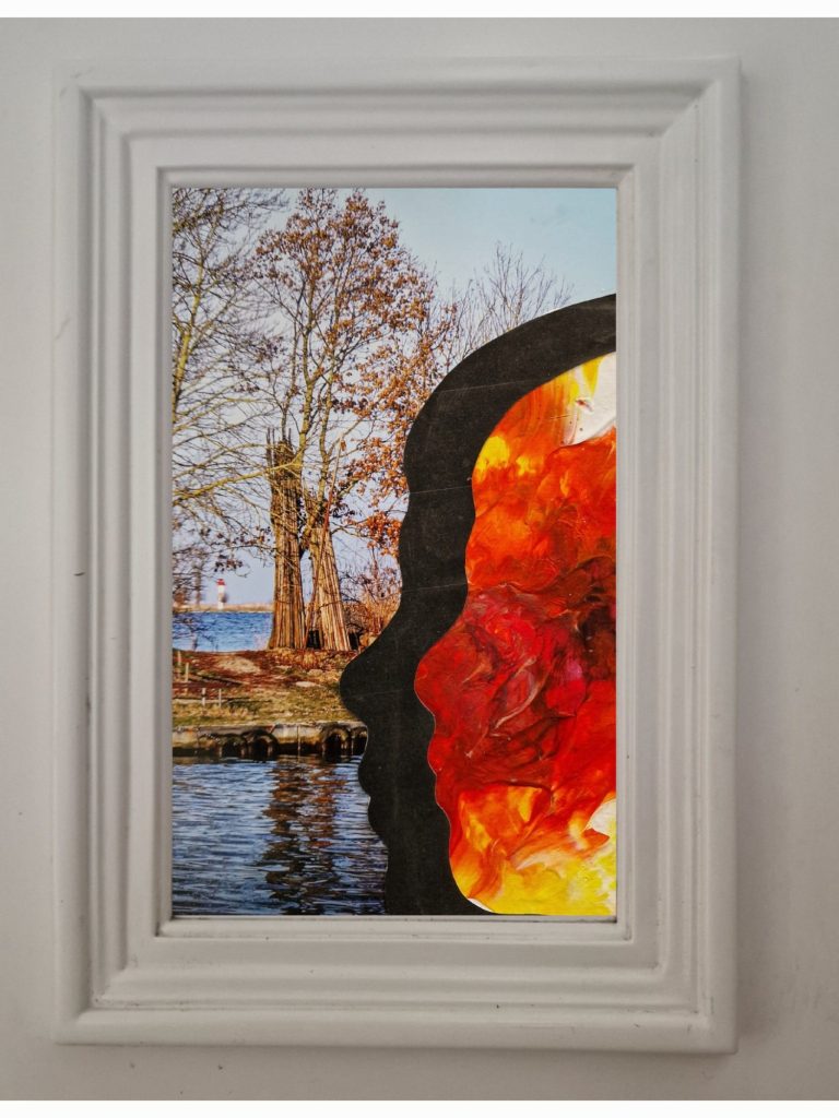 Aus negativen Gefühlen wird ein ausdrucksstarkes Kunstwerk, das du als eigenständiges Bild oder in einer Collage (siehe links) verwenden kannst. Probiere es aus und erlebe, wie Kunst zum Ventil für deine Emotionen wird.