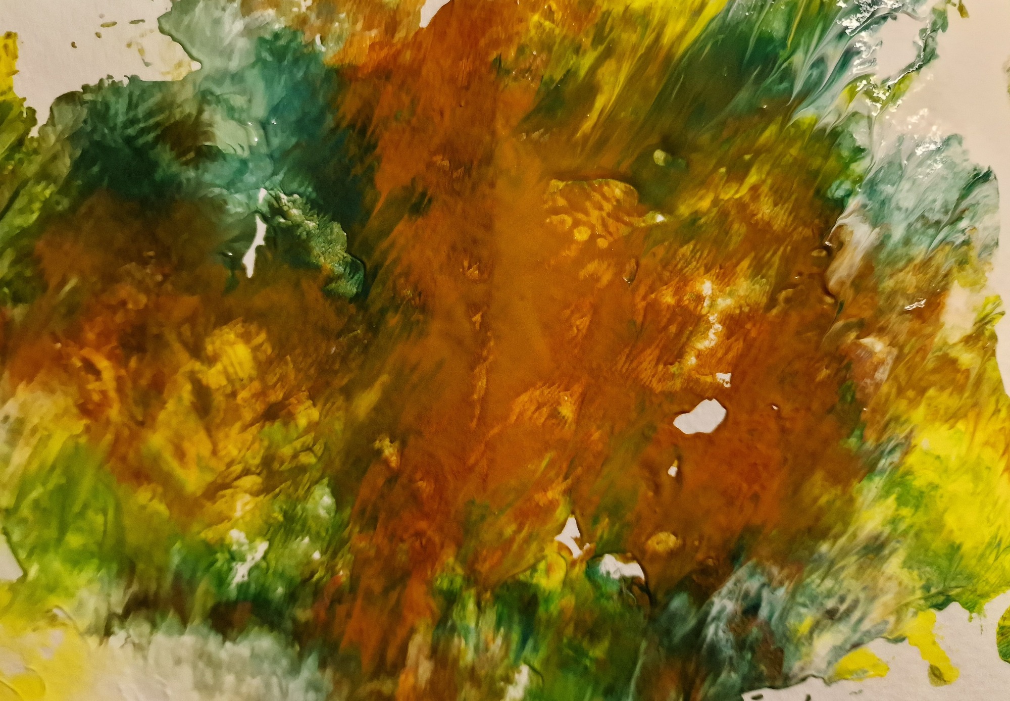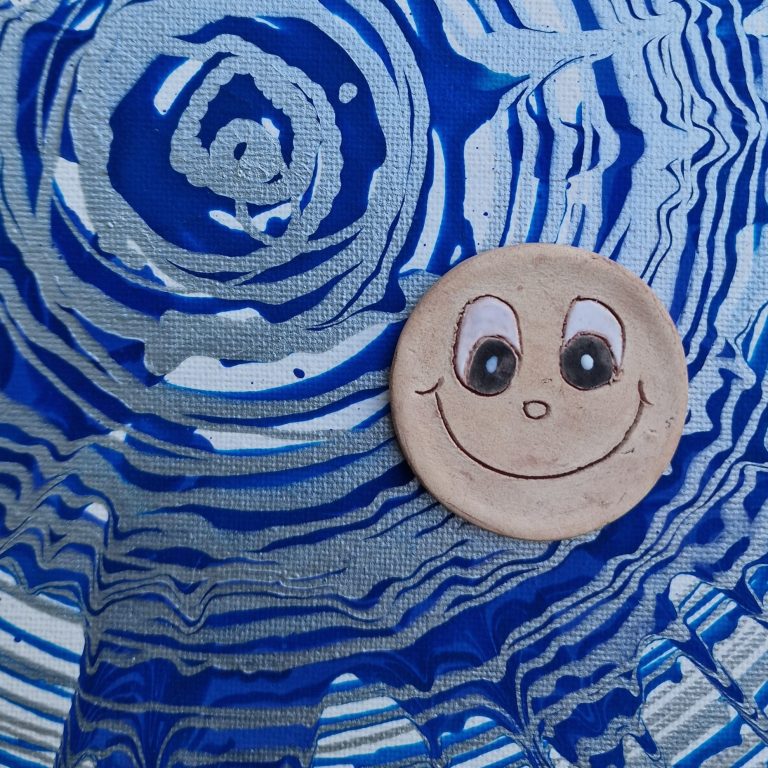 Manchmal bleiben kleine Eierschalenstücke auf der Leinwand kleben und trocknen zusammen mit der Farbe, was einen zusätzlichen 3D-Effekt erzeugt.