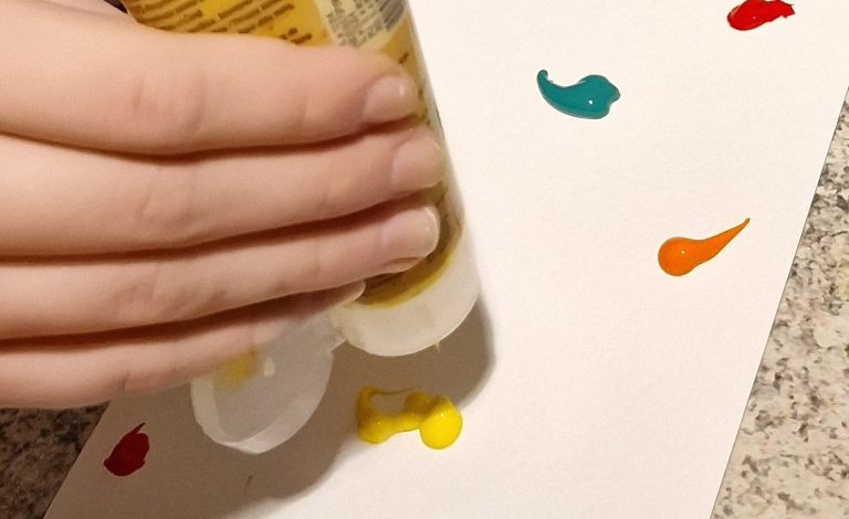 Für die Frisbee-Kunst nimmst du kleine Leinwandpappen und machst sie leicht feucht. Achte darauf, dass sie nicht durchnässt, sondern nur leicht angefeuchtet sind, damit die Farben gut verlaufen können. Tropfe nach Belieben verschiedene Farben auf die Leinwände. Sei kreativ und experimentiere mit verschiedenen Farbkombinationen und Mengen.