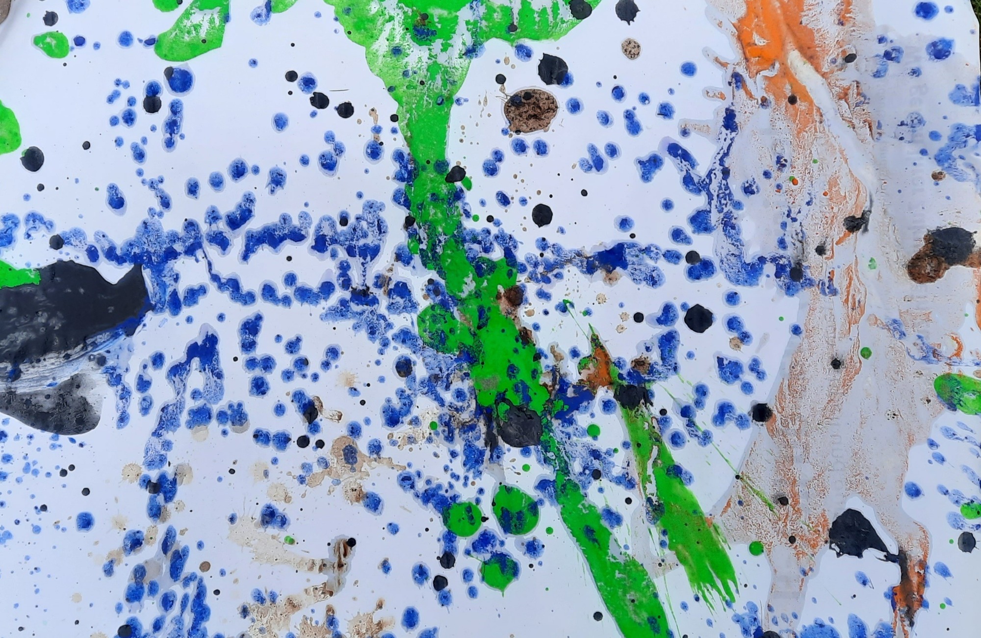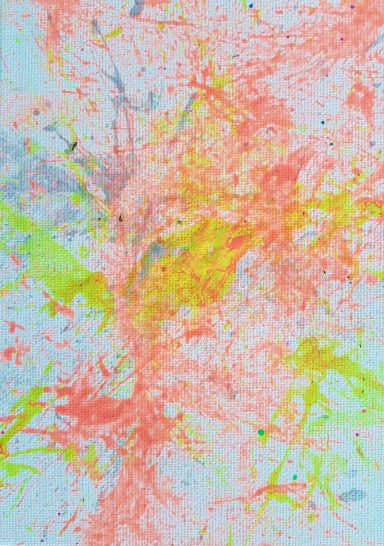 Alles, was du brauchst, ist flüssige Farbe und einen ganz normalen Schwamm. Beginne damit, den Schwamm mit der Farbe vollzusaugen. Wenn er schön durchtränkt ist, legst du ihn auf ein Stück Papier. Jetzt kommt der spannende Teil: Schlage kräftig mit der Faust auf den Schwamm. Die Farbe spritzt in alle Richtungen und es entstehen wunderschöne, unvorhersehbare Bilder.