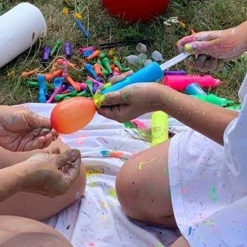 Der Prozess beginnt mit einem einfachen Luftballon, gefüllt mit bunter Acrylfarbe.