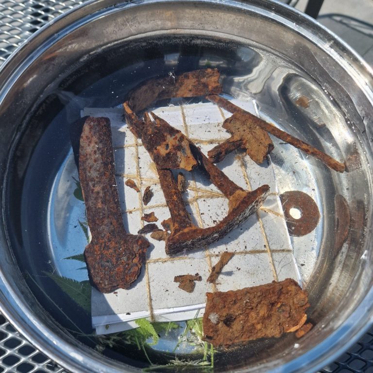 Lege das Bündel in das Alaunwasser und füge rostiges Metall hinzu, um dem Papier eine zusätzliche antike Färbung zu verleihen. Dann lässt du alles erst aufkochen und dann 2-3 Stunden köcheln.