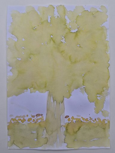 Löse Alaunsalz in warmem Wasser auf und weiche das zugeschnittene Aquarellpapier für einige Minuten darin ein. Die Blüten und Blätter ordnest du zwischen die feuchten Papierblätter an und stapelst diese übereinander. Lege oben und unten eine Pappe auf den Papierstapel und verschnüre alles fest zu einem Bündel.