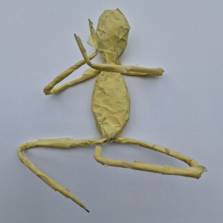 Bei der Herstellung von Pappmaché-Figuren beginnst du damit, aus Draht die gewünschte Grundform zu biegen. Diese dient als stabile Basis für deine Figur. Um Hohlräume wie Kopf oder Bauch auszufüllen, verwendest du Zeitungspapier, das du so lange hineinstopfst, bis die Form deinen Vorstellungen entspricht. Danach wickelst du die gesamte Figur großzügig mit Malerkrepp ein, was ihr eine leichte Struktur verleiht und sie stabiler macht.