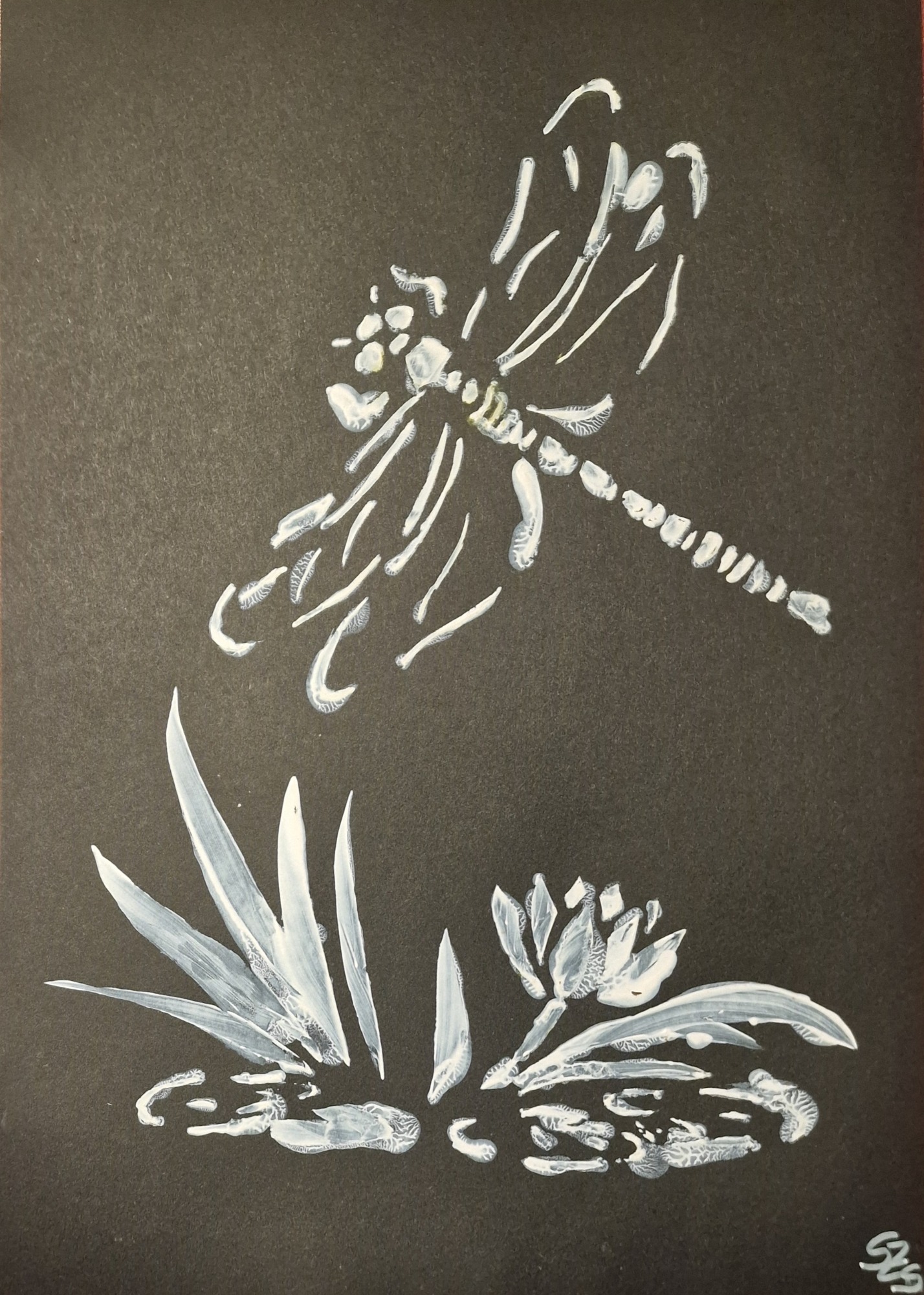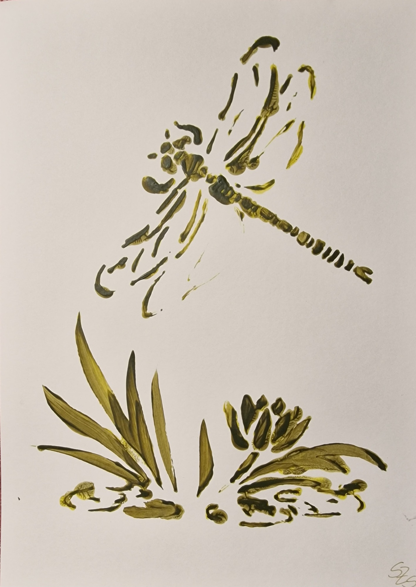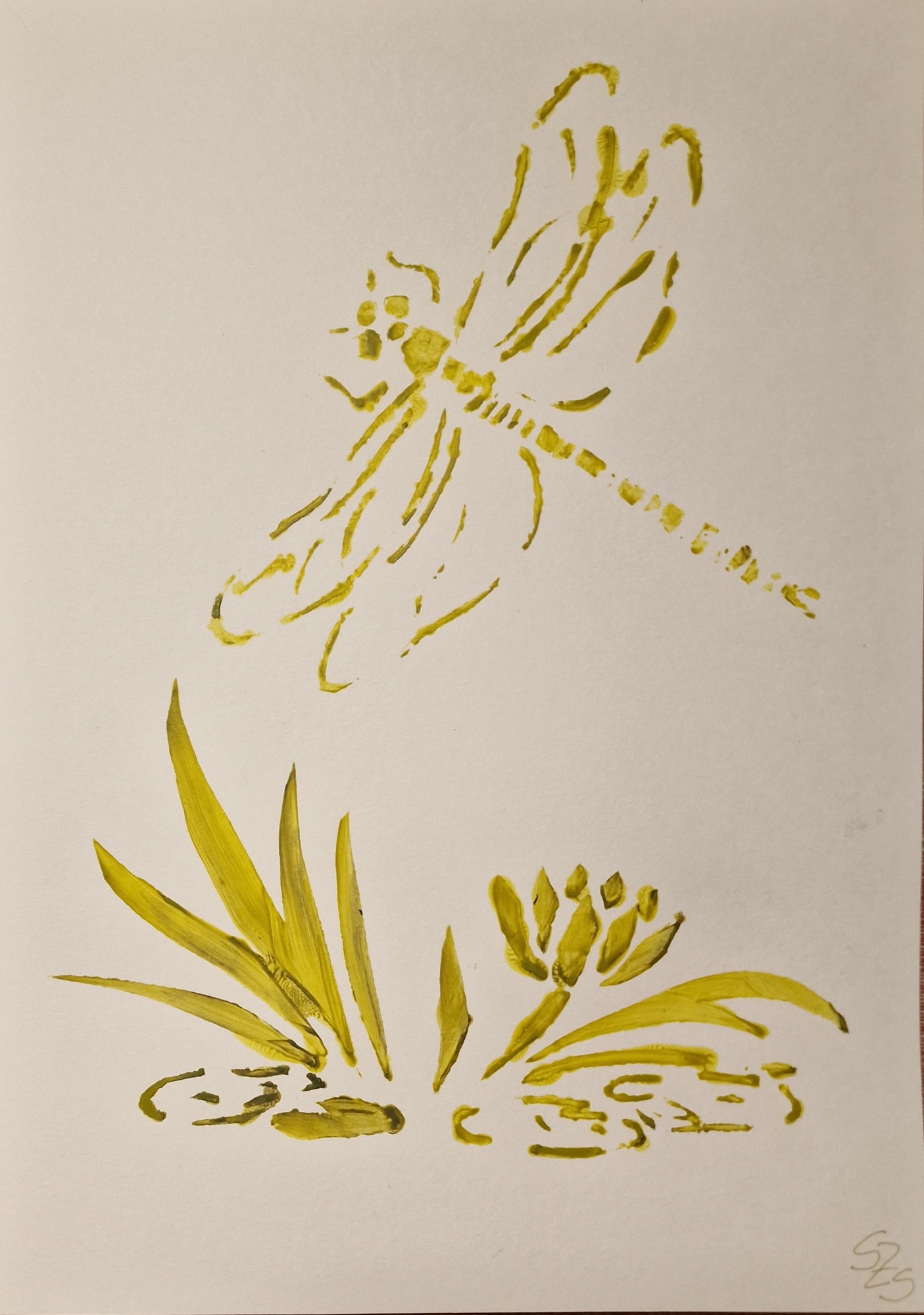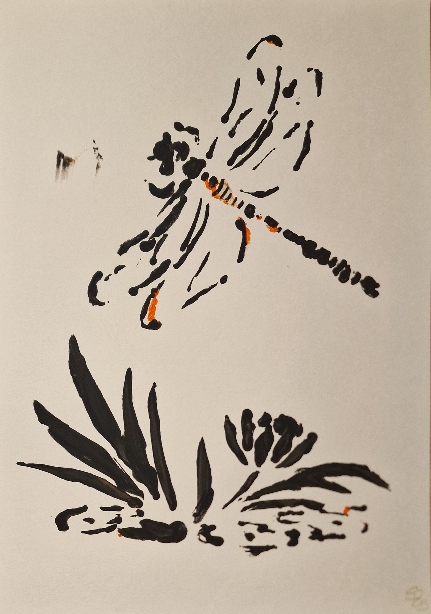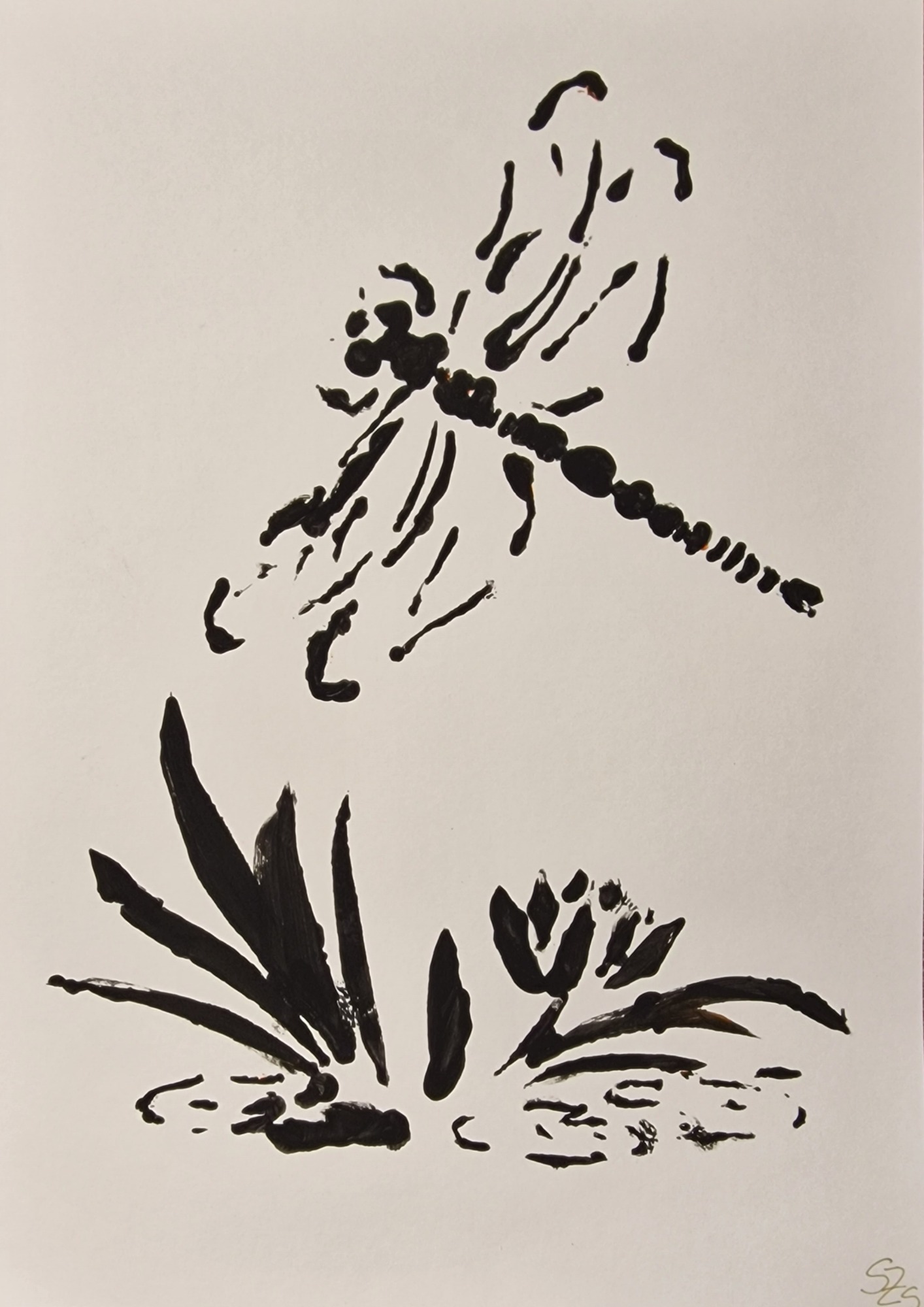 Aus der Stille heraus entsteht die Form - fein in Papier geritzt. Die Libelle ist ein Symbol für Leichtigkeit und Wandel, für das Gleichgewicht zwischen Bewegung und Ruhe.