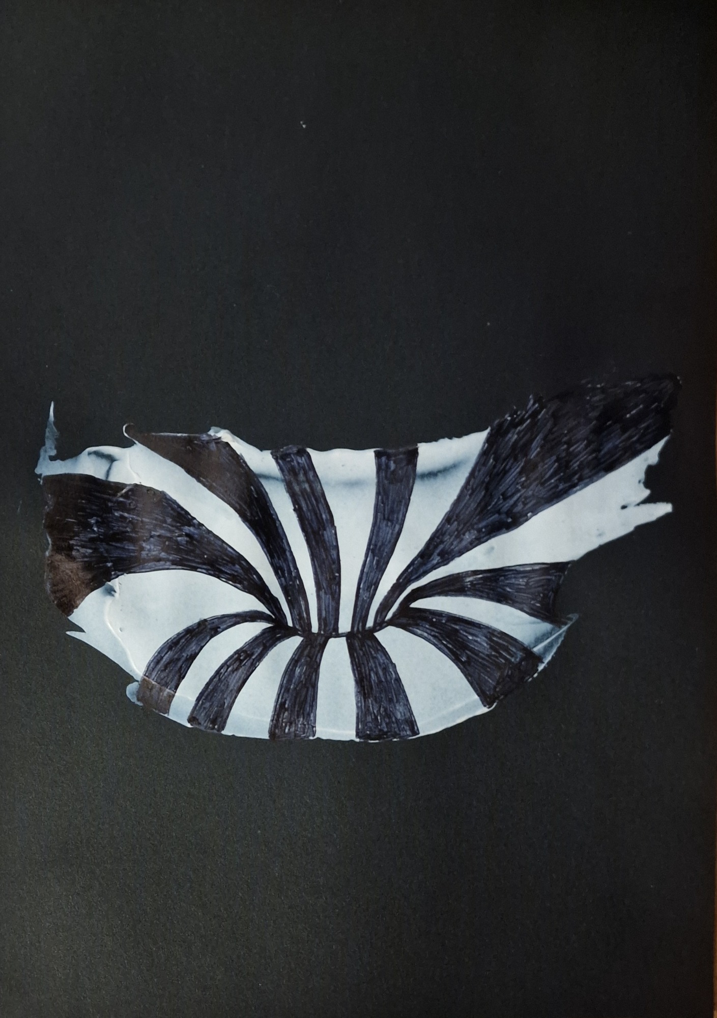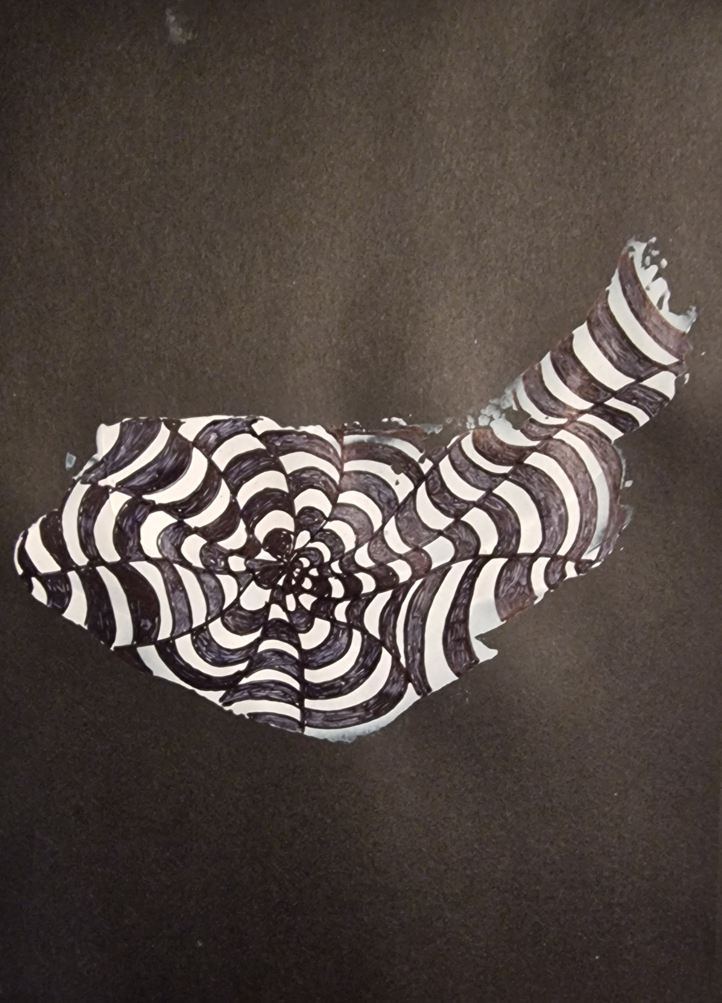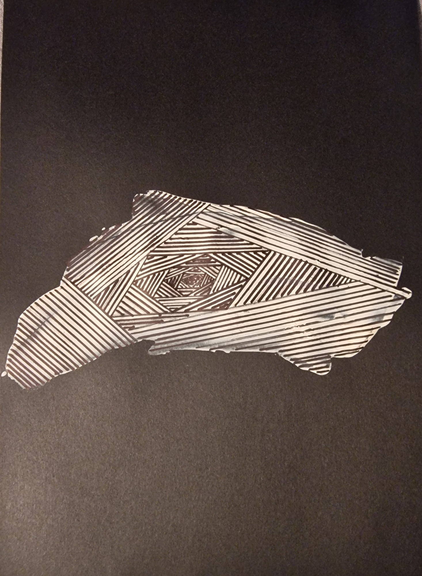 Im September geht es darum, Gedanken zu lenken und in Klarheit, Dankbarkeit und Geduld einen inneren Frieden zu finden. Ausgangspunkt meines Projektes war ein zufällig gesetzter, breiter weißer Farbstrich auf schwarzem Papier. In diesem spontanen Moment hinein entstanden anschießend 5 unterschiedliche 3D-Motive, die sich aus der Fläche heraus entwickeln. Das Spiel von Schwarz und Weiß schafft dabei Fokus und Ruhe zugleich. So wird aus zufall eine bewusste Auseinandersetzung mit Sinn und Wahrnehmung.