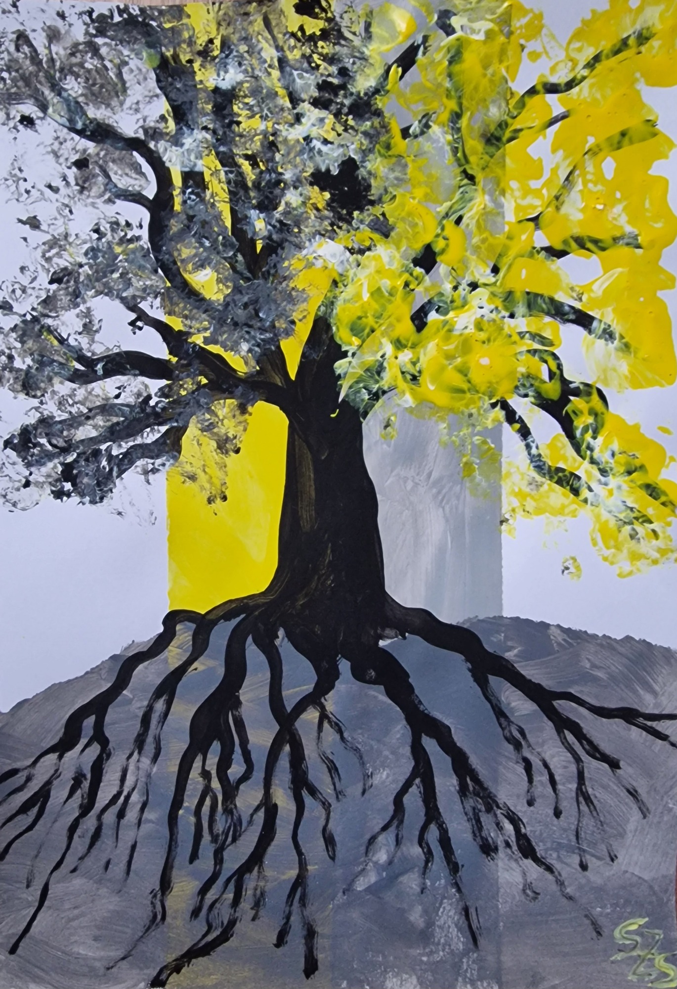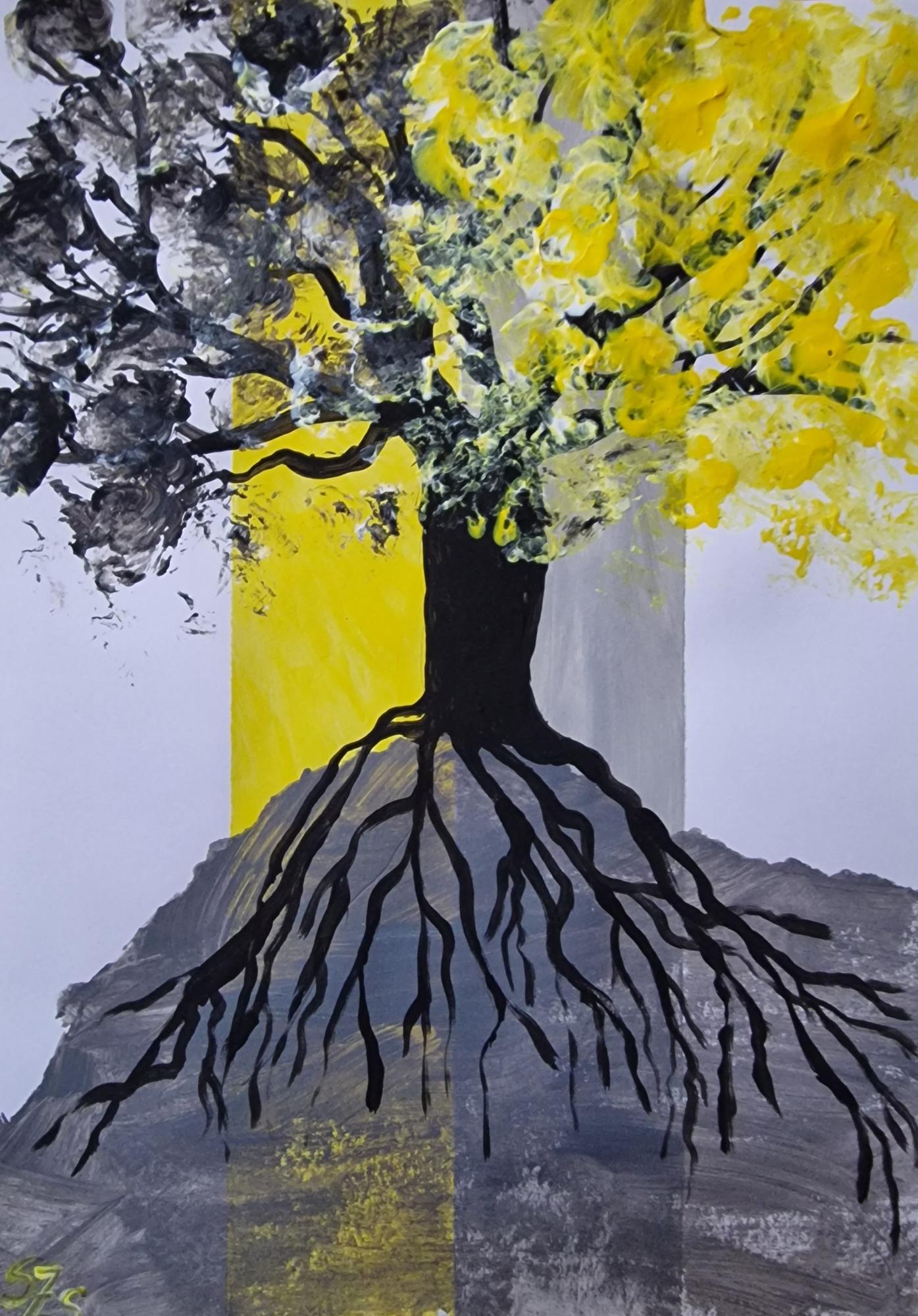 Die erste Rauhnacht steht für das Eintauchen in die Wurzeln unseres Seins. Wie ein verwurzelter Baum symbolosiert sie Halt, Verbinundung und die Grundlage unseres Lebens. Darum möchte ich mich in meinem ersten Kreativprojekt dem Thema Baum widmen und einen Baum gestalten, der diese Kraft und Tiefe verkörpert.