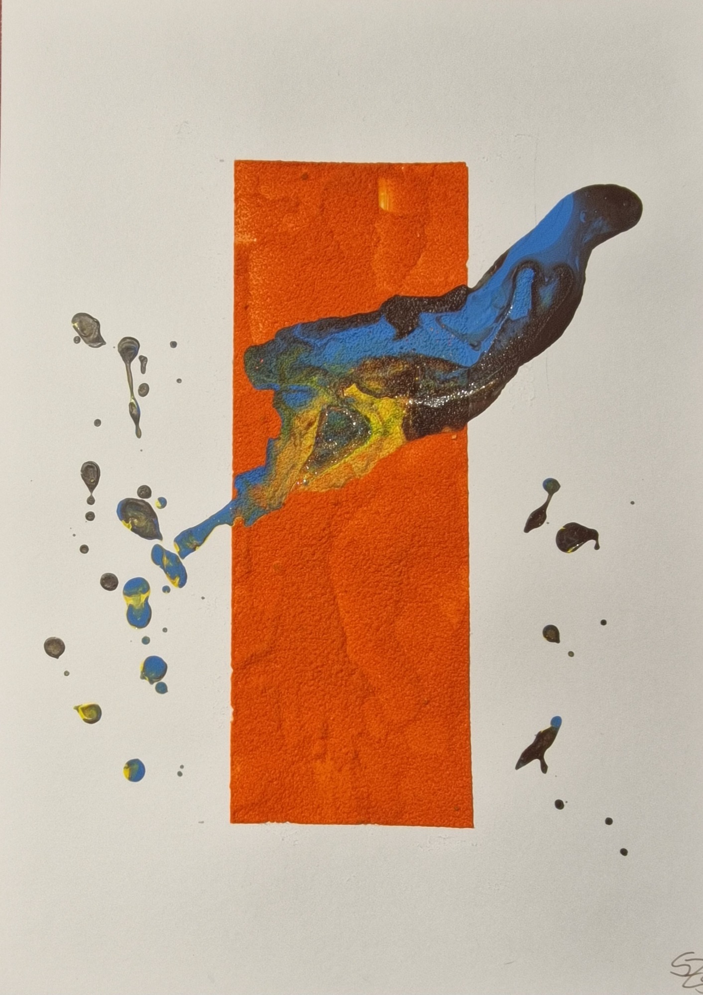 Im Oktober steht das Gehen eigener Wege im Mittelpunkt - getragen von Mut, Vision und dem Wunsch nach innerem Gleichgewicht. Ausgangspunkt dieses Kreativprojektes war eine gespachtelte, strukturreiche Fläche, die dem Bild eine klare, fast ruhige Grundlage gibt. Darauf trafen spontan gesetzte, bunte Farbspuren, die sich unkontrolliert entfalten durften. So begegnen sich Ordnung und Zufall und finden in ihrer Gegensätzlichkeit eine eigene Harmonie. Aus diesem Spannungsfeld entsteht Bewegung - ein Impuls, ins Handeln zu kommen und den eigenen Weg weiterzugehen.